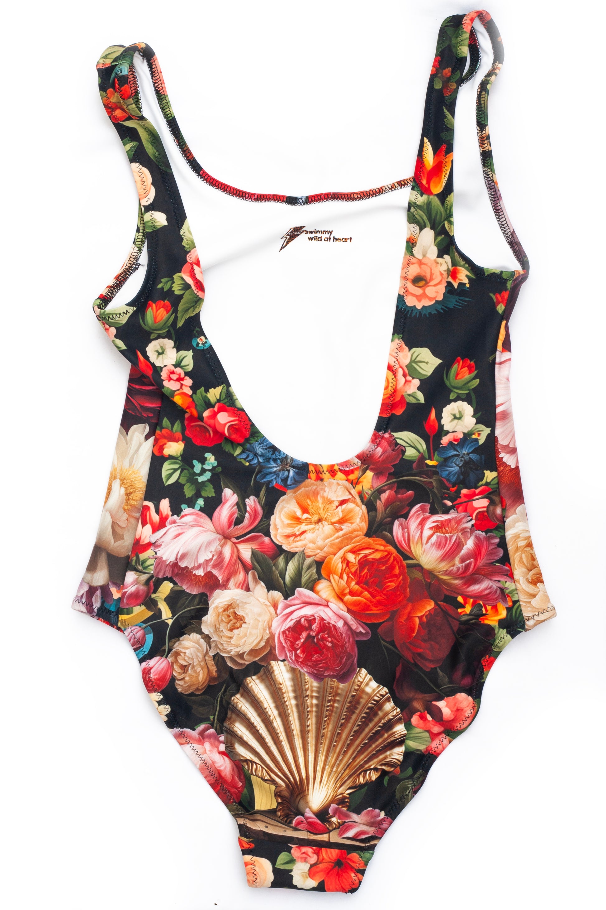 Step into the world of sexy Italian elegance with our decadent swimsuit inspired by the rich tapestry of Sicilian culture and Catholic iconography. This swimsuit exudes opulence and sophistication, marrying floral elements reminiscent of Dutch Masters' style paintings with symbolic motifs of the sacred heart and Lady of Guadalupe.